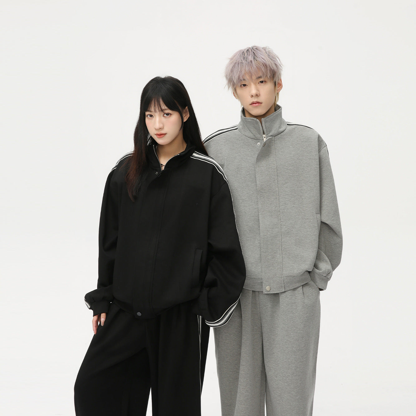 Nouveaux costumes pour hommes et femmes à col montant avec un design de couleur contrastée