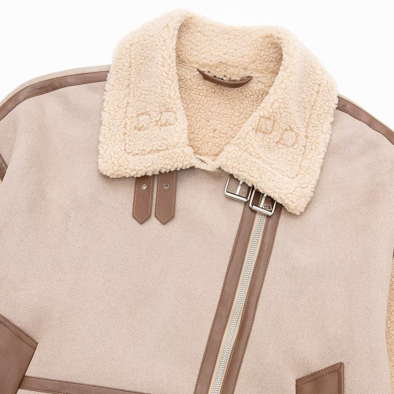 Manteau d'extérieur tendance et polyvalent à col cousu et manches longues